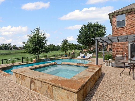 Beautifully updated home in Sachse’s desirable Woodbridge community, backing to the private Woodbridge Golf Club fairway. Offering 4 bedrooms, 3.5 baths, and 3,496 sq ft, this property combines open-concept living with outdoor resort appeal. The chef’s kitchen features granite countertops, stainless-steel appliances, abundant cabinetry, and a large peninsula open to the living area with soaring ceilings and golf course views. The primary suite on the main level includes a spacious bath with dual vanities, separate shower, and soaking tub. Upstairs offers a versatile game room or loft, plus secondary bedrooms with generous closets.