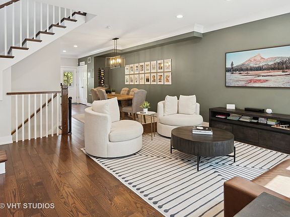 Welcome home to your new townhome in Norwood Park! Norwood Park is one of Chicago's best enclaves providing fantastic parks, easy access to transportation and a short ride to the amenities of the surrounding suburbs. Built in 2018 this townhome shows like new. Upon entering the home you will be greeted by a grand wood stairway and a bright spacious layout. The home boasts hardwood floors throughout the 1st and 2nd floor along with extra tall ceilings throughout. Beyond the entryway you will find the spacious living room, perfect for entertaining or a quiet night in. Continuing through the first floor, you will find the dining room that can easily accommodate an extended table. Along the back of the home is the open concept kitchen with quartz counters, GE appliances and pantry. The main level is completed by two additional closets and a half bath. Continuing downstairs you will find a great space for watching your favorite sports team or movie. The home sits high so the downstairs rec room has great light from above-ground windows, extra tall ceilings and a wet bar with beverage fridge. Additionally downstairs, you will find a full bath, bedroom and utility storage room. Moving to the top floor which includes a large primary bedroom with double closet, ensuite bathroom with double vanity sink and rain shower. Completing the top floor is two additional bedrooms, additional full bathroom and laundry. The backyard of this home is where you will want to spend your summers. The fully fenced in yard includes a brick patio, two-hole putting green, gas grill hookup and water tap. Two parking spaces are also included in the price. This home is a delight to live in, 2018 construction and very thoughtfully built, near parks and the North Branch Trail, tons of restaurants, shopping and a short ride downtown via the Norwood Park Metra Station.