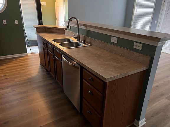 Vinyl hardwood flooringNewly installed stoveFirst floor unit