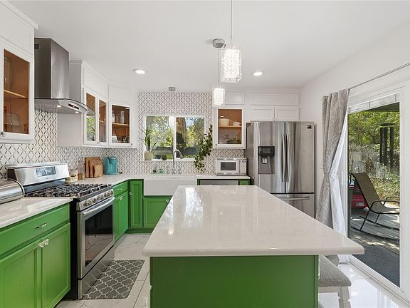 Stylish backsplashOpen floorplanOversized backyardVinyl plank flooringOriginal hardwood floorsQuartz countertopsFully remodeled eat-in kitchen