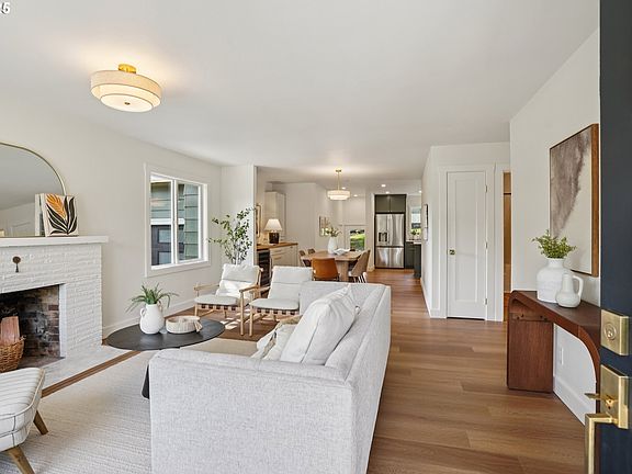 Beautifully remodeled 1953 bungalow, transformed top to bottom with modern updates! Located in the highly desirable Hayhurst neighborhood of SW Portland. This bright and airy home offers the perfect balance of comfort, style, and function. Step inside and discover an inviting living space featuring a brand new, expansive kitchen, ideal for both everyday living and entertaining. This home features two wood-burning fireplaces, 4 bedrooms and 3 full baths, and over 2000 sqft. The primary bedroom boasts a private en suite bathroom with a double vanity, walk-in shower, and an impressive walk-in closet with custom organizers. The second main-floor bedroom is perfect for guests or an office, with a full bathroom nearby. The full basement offers a large family room and plenty of space with two additional bedrooms, a third bathroom, a utility room with laundry, and ample storage. The large backyard and patio are perfect for gathering with family and friends. Key updates include: High-efficiency furnace and air conditioning, new water heater, plumbing, and electrical systems, New 200-amp electrical service, meter, and panel. New roof, energy-efficient appliances, quartz countertops and tile backsplash in the kitchen + freshly tiled bathrooms, new flooring and paint throughout and more! Perfectly located within walking distance of local schools, Gabriel Park, and a short drive to Multnomah Village and Jesuit High School, this home offers the ideal mix of suburban tranquility and city convenience. Open House Sat. Oct. 4th and Sun. Oct. 5th 1-3PM [Home Energy Score = 6. HES Report at https://rpt.greenbuildingregistry.com/hes/OR10242123]