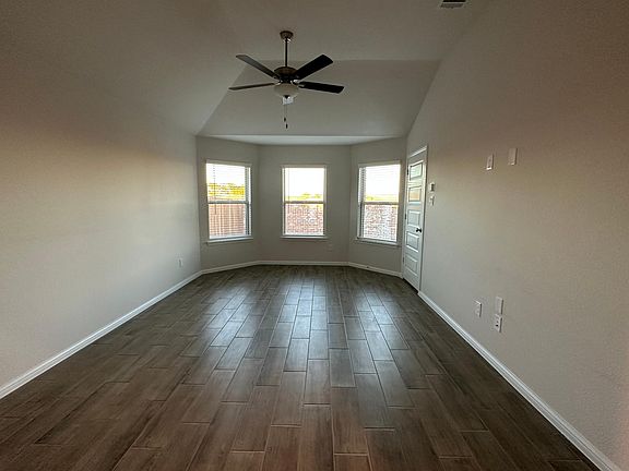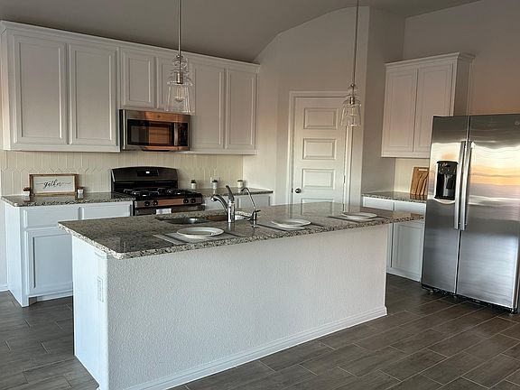 A beautiful 1 story 4bed and 2 fullbath home is available for lease. Open layout with a private study, natural light throughout, wood-look tile flooring in the main living, and a luxurious owner's suite with a bay window and sloped ceilings. Step through the covered porch and into the foyer. A hallway connects 2 large bedrooms and a full bathroom. Neutral colored carpet accentuates the bedrooms and wood-look tile flooring continues into the bathroom. Marble-inspired tile surrounds the tub and shower. Another bedrooms and a sizable storage closet reside across the hall. Continue past the study secluded by French doors and into the spacious heart of the home. White cabinetry, granite countertops, a beige tile backsplash, and stainless steel appliances complete the kitchen. The owner's suite is located at the back of the home. Dual sinks, an oversized shower, and a large walk-in closet enhance the en-suite bath. The Refrigerator, Washer and Dryer are included!