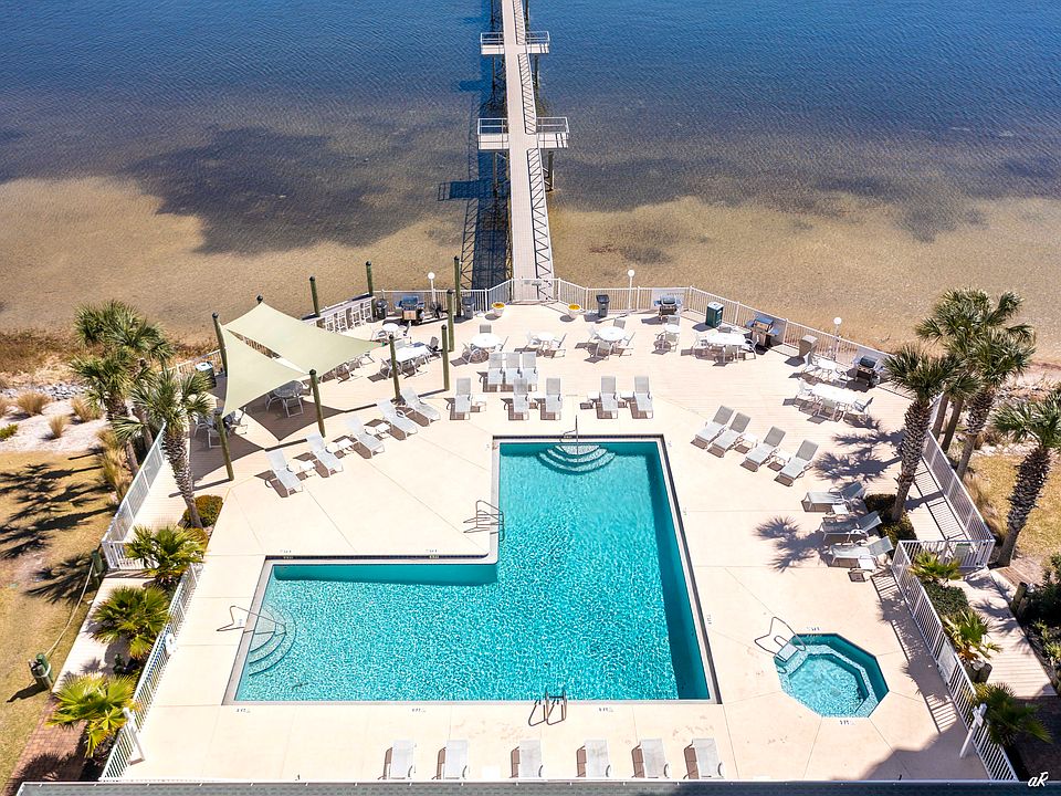 -Pool/hot tub deck overlooking the North Bay with grills and lounge areas