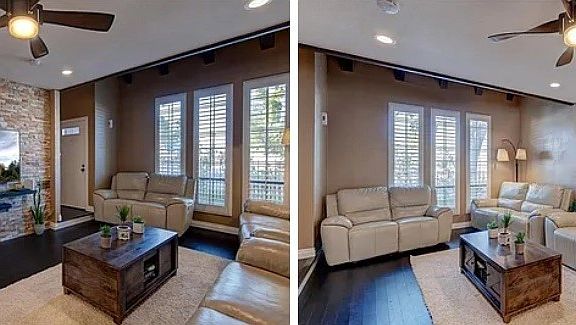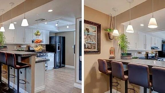 This unique beautiful townhome is highly upgraded!! This charming townhome has a special appeal that is unlike many other homes!! The fresh white cabinets and earth tones used in the granite counters, hardwood flooring, stacked stone and the soothing wall color make for a home that is cozy & ready to move into!! Pendant lighting & shiplap at kitchen ceiling give an added designer touch. Open entertaining floor plan W/ the kitchen and dining nook that looks into the family room. In addition to the seating area at the kitchen, there is an additional built in bar/breakfast area W/ matching granite. Porcelain tile flooring in the kitchen and laundry/office nook. The primary bedroom is a loft style w/ Exposed beams that add a design flair. There are 2 full bathrooms upstairs that have nice upgrades. Shutters added in the front windows for special curb appeal & energy efficiency, upgraded security door at front entrance. french doors that lead to your covered carport.