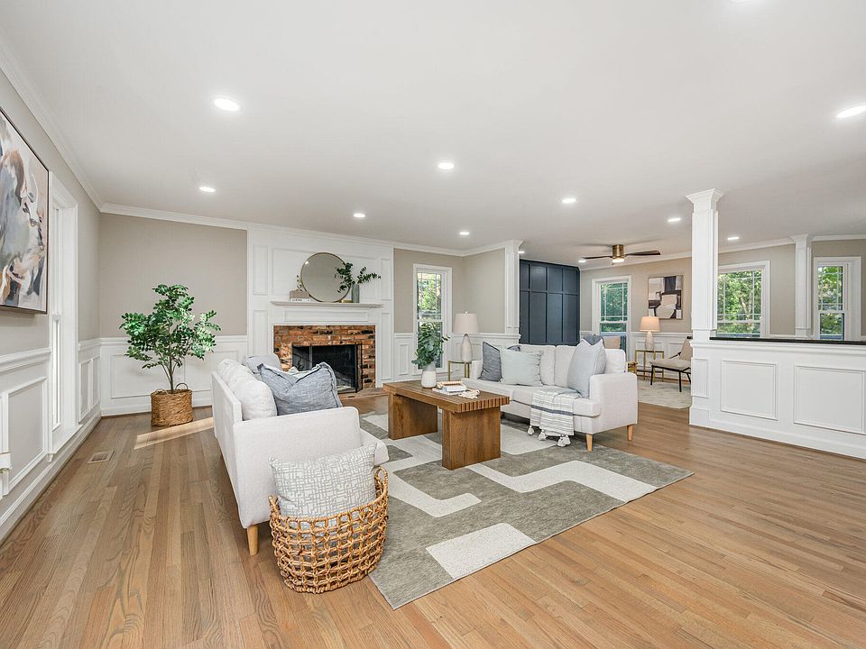 - Chandelier, Crown Molding, Eat-in Kitchen, Kitchen Island, Kitchen/Dining Room Combination, Living/Dining Room Combination, Recessed Lighting, Room Over Garage, Second Primary Bedroom, Separate Shower, Smooth Ceilings, Walk-In Closet(s)