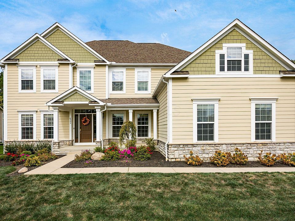 This beautifully maintained 2-story home in Hampton Reserve within Hilliard Schools is a true gem. This home offers main-level living! The heart of the home is a bright great room with soaring windows and a floor-to-ceiling stone fireplace, open to the chef's kitchen with granite counters, stainless steel appliances (including a double oven), and a true walk-in pantry. Hardwood flooring adds elegance throughout the main level. The first floor also offers flexibility with a fifth bedroom or in-law suite, full bath, private family room with deck access and retractable awning, a study, formal dining room, and laundry.