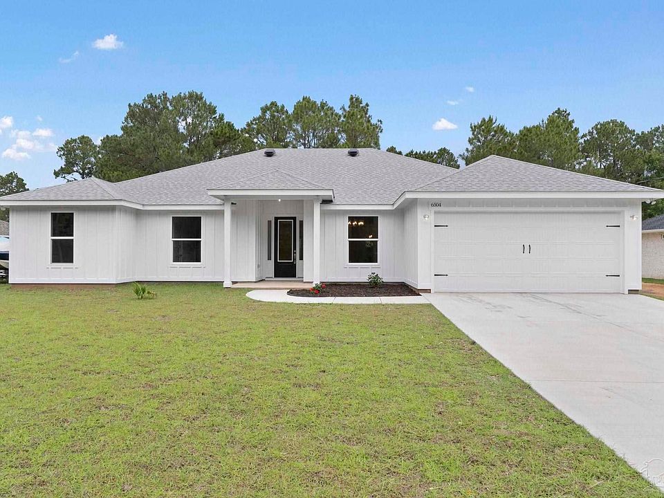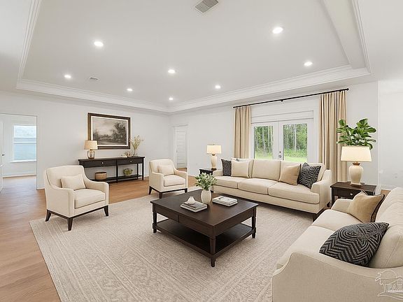 Welcome to Tidal Bay — This beautifully designed five-bedroom, three-bath home rests on nearly half an acre, offering the perfect balance of style, functionality, and flexibility. Thoughtfully crafted with a spacious, flowing layout, every detail is tailored to provide comfort and modern convenience for today’s lifestyle. The open-concept layout is both inviting and well-designed, with distinct spaces for lounging in the living area, prepping in the kitchen, and dining in either of the two dining areas. The split floor plan provides privacy, with the primary suite tucked away on one side of the home. On the opposite side, you’ll find four additional bedrooms and two full bathrooms. One of the bedrooms features exterior door access, making it an ideal space for guests to come and go comfortably. The builder spared no detail in creating a high-quality living experience. Energy-efficient features include solar ventilation fans in the roof system and a heat pump conditioning system. Superior craftsmanship is evident in the all-wood shelving in closets, cabinets, and the pantry; quartz countertops throughout; elegant window casing and trim molding; and warm-toned luxury vinyl plank flooring. Protective features include a secondary water-resistant barrier with ice and water underlayment on the roof system, as well as impact-rated windows and doors. As if the home itself weren’t impressive enough, the neighborhood truly completes the picture with quiet, tree-lined streets, a welcoming family feel, and even a spot to launch your kayak or small boat. Come see this beautiful home today!