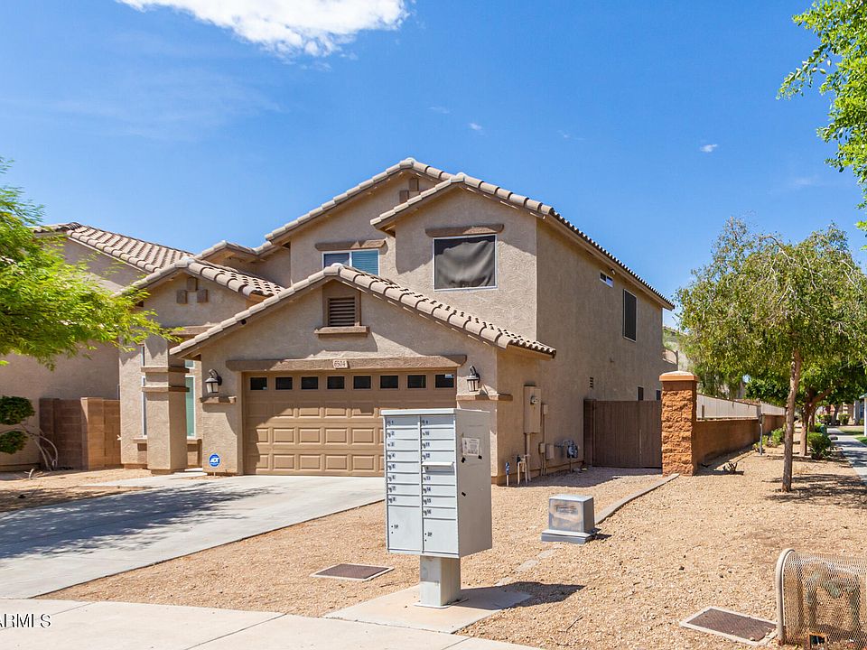 This meticulously cared-for 3-bedroom, 2.5-bathroom home is a gem on a corner lot next to a vibrant park with a volleyball court and a beautifully manicured field featuring maturing trees and lush landscaped grass. The open-concept layout with vaulted ceilings creates an inviting atmosphere. The stunning interior includes a harmonious living/dining room and a spacious great room perfect for gatherings. The kitchen is a chef's dream with sleek track lighting, stainless steel appliances, a gas stove, pantry, granite counters, and a center island with a breakfast bar. Upstairs, discover a sizable loft, versatile bonus room, and luxurious primary bedroom with balcony access, dual sinks, and an expansive walk-in closet. Additional highlights include a fantastic laundry room, clever storage under the stairs perfect for a cozy nook, an RV gate, and a 2-car garage. The expansive backyard with elegant pavers is an entertainer's paradise, featuring a huge covered patio with two outdoor ceiling fans. Situated just off the 202 freeway, this home provides easy access to major transportation routes, making commuting and traveling around Phoenix convenient. Neighborhood also includes playgrounds, biking/walking paths.