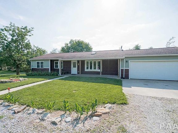 Very nice home, tucked away on 4.87 acres. Home is on a corner lot minutes away from Shoppes at Grand Prairie and I74. Home features a 65x9 wrap around deck. Complete exterior has been updated. Many interior updates. It is on beautiful land that is zoned both residential and agricultural, featuring partial woods and a 69x41 Quonset building. Do not miss this one. Seller is motivated-will consider all offers.
