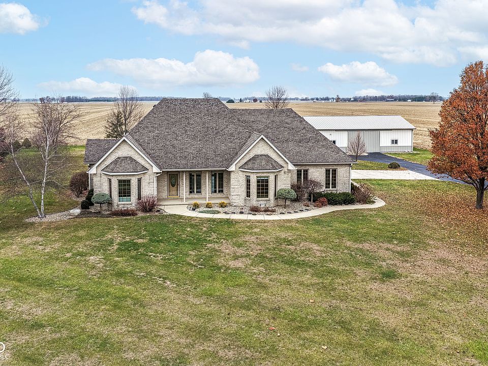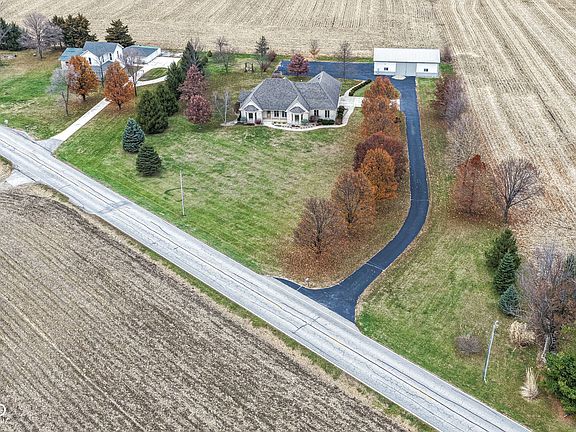 WOW! Don't miss THIS one! Lapel Schools! Sitting on just under 2 acres! Sprawling Custom Ranch/One-Level Home with Walk-Up Unfinished 720 sq ft Space- Ready for your Creativity + 2 Car Attached Garage PLUS 50x30 Pole Barn w/ heated Workshop & Space for Equipment or Additional Vehicles! Welcome Home to this inviting ranch-style home featuring spacious 3 bedrooms, 2.5 baths, split floor plan designed for comfort and convenience. Soaring vaulted ceiling in great room creates an open, airy feel, complemented by a cozy gas log fireplace and abundant natural light. Generously sized eat-in kitchen offers lots of cabinets and countertop space, perfect for everyday cooking & entertaining. Formal dining room provides elegant setting for gatherings. The primary suite includes a custom walk-in closet and a private ensuite with double sinks, a full shower, and a relaxing garden tub. A versatile den/library overlooks peaceful, wide-open acreage-ideal for work, reading, or quiet moments at home. The sprawling nearly 2 acres of property offers a huge driveway and plenty of outdoor space to enjoy with kids, family or grandkids! Don't miss this one!