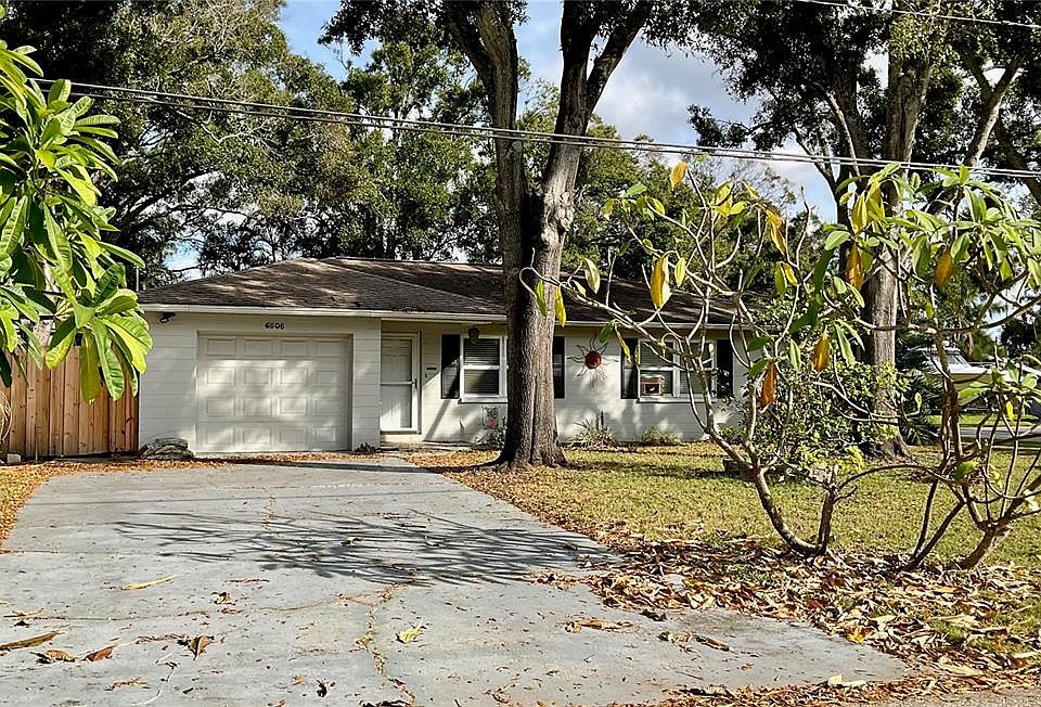 Wow! Almost a quarter acre on a corner lot! This home has 3 bedrooms, 2 baths, one car garage with 1578 sq.ft . Here is an opportunity for you to update with your own interior designs. The bedrooms are a split plan and are all waiting for your personal touch. The kitchen is in the heart of this home with a dining area and a pass-through to the family room. All the action takes place in the family room, with a countertop bar area, and room for your big screen TV. French doors from the family room, open to a large patio for barbecues with friends and family. The backyard is completely enclosed with a new 6ft. fence that provides privacy. Plenty of room here for your furry friends to play, store a boat or put in that pool you have always wanted. There are even two storage sheds. Location, location, location always important! Only minutes from 275 for commutes to Tampa or downtown St. Petersburg, airports, schools, and the beaches. What are you waiting for! Call today for a private showing and secure your place in the sun.