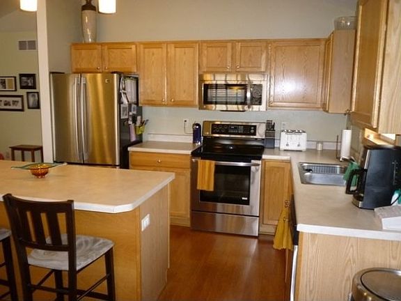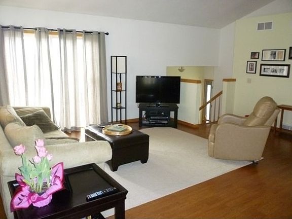 Pottery Barn Cute! 3 Bedroom on quiet circle. Main floor has wood laminate flooring. Living room w/sliding door to large deck. Kitchen with LG stainless appliances, center island & breakfast bar. Large Dinette. Master Bedroom has walk thru bath. Spacious exposed lower level Family room w/gas log fireplace, Bedroom & Bath. Many updates include custom blinds & room darkening shades, remodeled bathrooms, modern light fixtures & ceiling fans. Close to Park. Home Warranty.