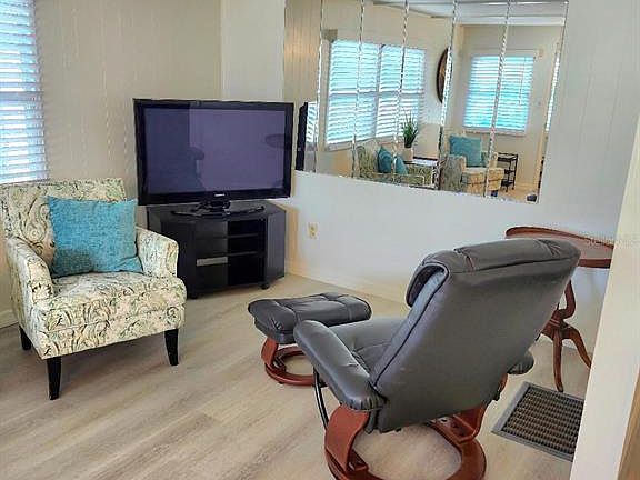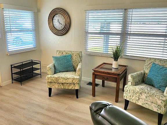 Check out this adorable bungalow in Paradise! Two Bedroom, One and a Half Bath Mobile Home in the highly desired, active 55+ Trailer Estates community. Newly updated Kitchen cabinets. New luxury vinyl floors throughout. Updated bath vanity cabinets and new shower. Master Bedroom has ensuite Bath. Second bedroom has great closet space! Utility room with washer and dryer. New electrical panel. Newer windows and vinyl siding. 8 x 9 Shed/Workshop. WDO tented 2023. You own the land. No lot rent, Park Fees are included into annual real estate taxes. Boaters have direct access to Sarasota Bay from the Marina. Trailer Estates community offers so many options for a great day! Enjoy the large, heated community pool, hot tub, gym and wood shop. The community buzzes with pickleball, shuffleboard, kayaking, horseshoes, bocce, dancing and more. A US Post Office on site. 10 minutes to the SRQ Airport. Convenient to shopping, restaurants, the Arts and everything in Bradenton/Sarasota. Bring offers!