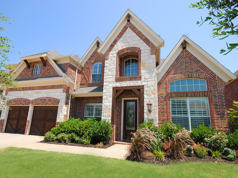 Austin Stone and brick facade with cedar accents offers excellent curb appeal! Grand foyer follows suit with elegant formals and sweeping staircase. Open flowing floorplan with two bedrooms down, two story soaring ceilings, plantation shutters and handscaped hardwoods. Kitchen with Stainless Steel appliances including 5 burner gas cook top and granite countertops is open to Family room with towering ceiling, wall of picture windows, and Austin Stone fireplace that reaches from top to bottom; a fantstic focal point to this family epicenter. Secluded Master retreat offers seating area, garden tub, and walk-in closet.Upstairs Gameroom and Media room with bar seating. Home is very energey efficient.