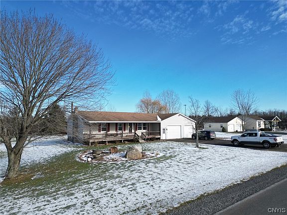 This charming ranch-style residence offers the epitome of one-level living, providing both comfort and convenience. With 3 bedrooms and 1 bathroom, this home can accommodate any number of living situations and those seeking a peaceful retreat. As you approach, the curb appeal immediately captures your attention, inviting you into a warm and welcoming space. The property sets on an ample .69 acres and boasts a deck that overlooks a private backyard, creating an ideal setting for outdoor relaxation and entertainment. A convenient shed is included, providing additional storage space for your outdoor essentials. One of the standout features of this home is its very large attached garage, offering more than enough space to accommodate a workshop, 3 season entertaining, storage and vehicles. The kitchen was beautifully redone and reimagined in 2021, showcasing modern design and functionality. New flooring throughout the home, adds a touch of contemporary style while ensuring a fresh and clean living space. A full basement provides ample opportunities for customization and expansion. Affordable and move-in ready.