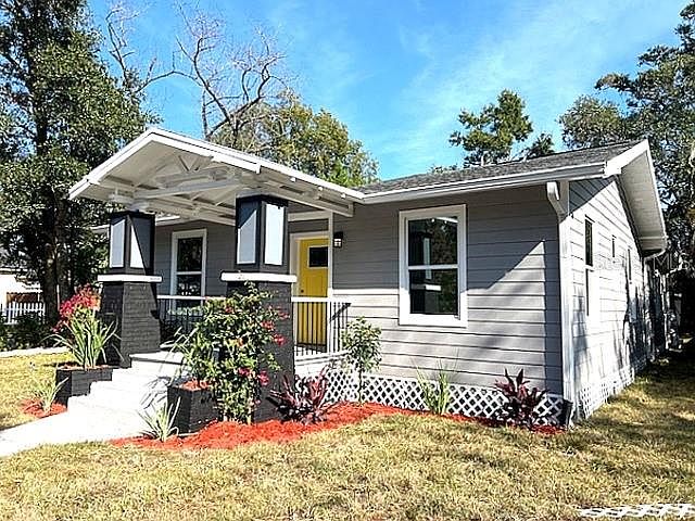 Gorgeous, Fully Renovated Bungalow in the Heart of Seminole Heights. This stunning, completely reimagined bungalow sits high and dry on an oversized corner lot in Flood Zone X, offering exceptional curb appeal from the moment you arrive. The charming front porch showcases original architectural columns and an exposed framed ceiling—true vintage character preserved with intention. (Professional photos coming Dec 8th) Step inside and you’re greeted by a spacious, sunlit open living area with sight lines stretching from the front door straight through to the back deck. The flow is seamless and inviting, perfect for entertaining or relaxed everyday living. If you love the charm of an historic home but want the peace of mind of new construction—this is the one. Every major component has been replaced: new electrical, new HVAC, new plumbing, new roof, new impact windows, full insulation (including walls), designer lighting, and new flooring throughout. The kitchen is an entertainer’s delight, featuring gorgeous white marble countertops, brand-new appliances, abundant cabinetry, and a dedicated pantry. Just beyond, an informal dining area overlooks the large backyard and expansive deck—ideal for morning coffee or sunset dinners. The primary suite is generous and private, with sliding doors opening directly to the deck. The ensuite bath feels spa-like with a large walk-in shower, frameless glass doors, and beautifully selected designer tile and fixtures. A spacious walk-in closet completes the retreat. The guest bathroom is equally impressive, offering white marble counters, a dual-sink vanity, and fresh designer finishes. Enjoy complete peace of mind knowing all renovations were fully permitted and completed to modern standards. Living here means being just a short stroll from some of Seminole Heights’ most beloved local spots—Mekenita Cantina, Trip’s Diner, Nori Nori Craft Handrolls, Wicked Oak BBQ, and The Revolution Ice Cream Company. This home delivers the best of both worlds: vintage charm, fully rebuilt for contemporary living.
