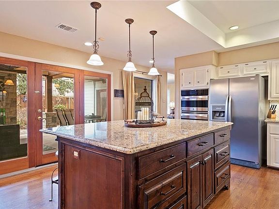 Great updates & fantastic location are the calling cards of this Brentfield listing. Generous use of wood floors, great size master suite, designer kitchen, & outdoor living area that begs to host get-togethers. Master has spacious sitting area with views & access to private courtyard. Master bath with glass shower, jetted tub, furniture style vanity with antique style chrome fixtures. 1st living area with fireplace, hearth, wood floors & plantation shutters. 2nd living area with wood floors & access to outdoor living & grassy yard, perfect for pets. Kitchen with oversized island - 3 cm designer granite with beveled edge & 3 ovens. Location is walkable to Brentfield-Park Hill without crossing busy streets