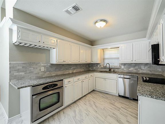 BRENTFIELD beauty updates galore! Huge Picture Windows bathe you in natural light as you gaze upon a backyard entertainers paradise--brand new open patio with shade trees begging for a swing! Cozy dining and living room w Plantation Shutters greet you on the right, while a wonderful split floorplan w spacious bedrooms and walk in closets will delight. Kitchen sparkles w granite,stainless and separate breakfast nook. Private second living room could be a study, media room, or schoolroom! The owner's suite has updated bath w double sinks, TWO showerheads and a huge frameless shower w lovely tile accents. A split 4th bedroom w another FULL bathroom completes the great layout. Walk to the neighborhood park!