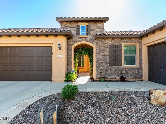 ABSOLUTELY STUNNING 2 bdrm plus den home on the 10th green! From the lovely stone front elevation and stone-pavered courtyard with fountain, to the serene golf course views, this home is a winner! Gorgeous chef's kitchen includes oversized cabinets, pendant lighting, gorgeous granite! Huge walk-in pantry PLUS a butler's pantry for extra storage! Spacious great room and formal dining room! Plantation shutters! The extended covered patio features travertine pavers, gas firepit! Did I mention the solar panels? They're owned free and clear, and convey with the home! The guest bedroom has an ensuite bathroom! There's even a Murphy bed in the den! Large 2-car garage with plenty of cabinets, and a separate golf cart garage!