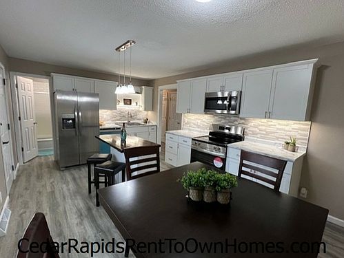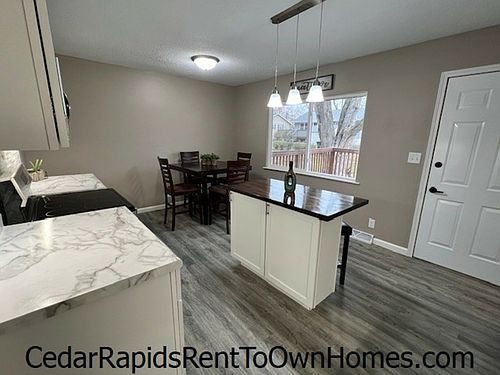OPEN HOUSE SUNDAY (12/7) 1:00-2:00 Renovated and Ready!!6506 Asbury Ln NE Cedar RapidsCompletely updated MUST SEE split foyer home in a desirable Northbrook NE Cedar Rapids neighborhood. Gorgeous modern kitchen filled with exquisite white shaker cabinetry, energy efficient stainless appliances, tiled back splash, island with breakfast bar, black quartz deep single bowl sink with cutting board, vegetable/fruit drainer and drying rack, plus under cabinet lighting. Countertops are high resolution. Open concept with a generous living room area. Natural light floods in the large windows throughout. Luxury vinyl planking for beautiful easy care flooring.3 bedrooms and 1 1/2 baths. 3 bedrooms on the main and a Jack and Jill bathroom. Master bedroom features nice sized closet. On the main level you will find 3 bedrooms all with ceiling fans and lighting. Both baths have been updated with brushed nickel. Main level bath has tiled shower. Lots of storage in main bathroom to accommodate all of your family's needs. Professionally painted in light earthy taupes to complement any decorating plans.Lower level boasts a MAN CAVE, perfect for all of your indoor activities. ½ bath right off family room/man cave for extra convenience. This level also has a laundry room with gas or electric for your dryer. Lower level conveniently walks into the extra big 1 stall garage. Loads of extra storage in garage with the extra concrete pad and shelving.Relax on the freshly stained deck perfect for entertaining. Or enjoy the fenced back yard with a perfect area for a firepit.This home should be energy efficient and maintenance free. 2025 & 2022- Windows, 2024- Deck, 2022- Furnace/AC, 2020 Roof and 2018 Water Heater. Too many updates to mention! This remarkable home is available for purchase at $215,000.00 on contract (seller financing) OR finance at your favorite lender. Also available "rent to own" at just $1695 per month, plus option fee, which is 100% applied to the purchase, if purchased within 12 months. Rent credits apply. Ask how you can have an additional $1200 applied to the purchase. You chose the option that is best for you!EZ QUALIFY. UGLY CREDIT OK.This can be YOUR NEW HOME for only $215,000.