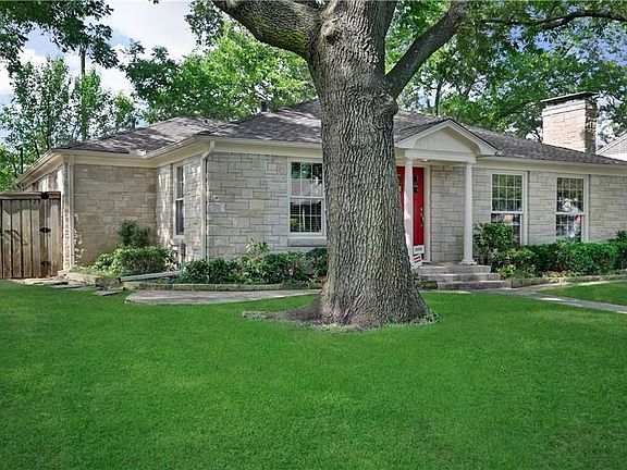 Charming updated one-story Austin stone home in coveted Lakewood Elementary area. Beautiful drive-up with mature trees and attractive landscaping. Home offers spacious open living areas with large windows, moldings and gas fireplace. Beautiful hardwood floors are in living areas and bedrooms. Kitchen has stainless appliances, granite counter tops, 5-burner cooktop, double ovens, and large built-in desk. Light and bright sunroom with wall of bookshelves overlooks grassy backyard. Three bedrooms are in the main house. Master suite has French doors to backyard, dual walk-in closets, seating area, jetted tub, and separate shower. Updated guest quarters with full bath are attached to a huge 4-car garage.