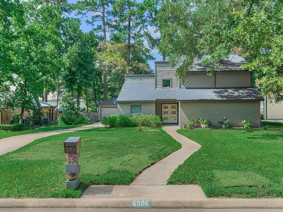 A rare beauty! Modern in The Northampton! Modern clean lines throughout with charcoal gray tile flooring, NEW carpet, & modular staircase <3 Beyond unique both in style AND the opportunity for 2 BEDROOMS DOWN! Gorgeously updated kitchen with quartz counters, tons of cabinetry, wine fridge, stainless vent hood, & open to your vaulted living room. 4 additional beds up and a beautifully updated bath. Newer double pane windows, roof and A/C! New garage door and irrigation system PLUS garage is wired for an EV vehicle. Be part of a community! Tons of neighborhood events, 2 neighborhood pools, walking trails and minutes from the Woodlands, 99, Exxon Mobil, airports, shopping, etc. New pickle ball courts near by, plus gymnastics and ninja studios!
