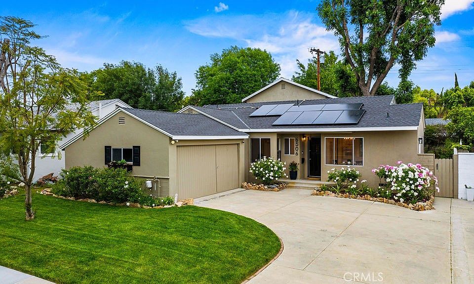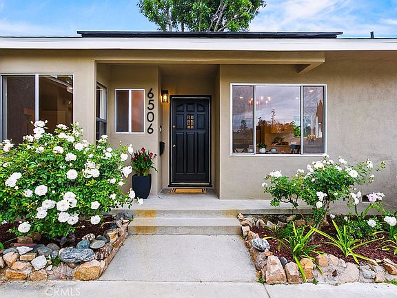 Welcome to a one-of-a-kind glow-up in Lake Balboa, just around the corner from the neighborhood’s beloved outdoor retreat. Nestled among many original single-level homes, 6506 McLennan Ave stands out with its expanded layout, thoughtful upgrades, and flexible living potential—including space ideal for a future ADU (buyer to verify). From the moment you arrive, the home invites you in with a rich green lawn, blooming front rose garden, charming shutters, a window box, and modern lighting—all framed beneath a 2025 permitted new roof and freshly painted exterior. Step through the foyer into a spacious open-concept living and dining area, perfect for hosting the holidays or simply enjoying a quiet life. New light-toned LVP flooring, recessed lighting, crown moulding, and fresh interior paint provide a modern canvas to create your own home-life. The updated kitchen shines with new quartz countertops, painted cabinetry, white subway backsplash, a customized hood, fireclay sink, and gold-toned faucet. Morning light streams into the kitchen's casual dining space, where a new chandelier adds elegance, and beyond the kitchen bar seating are the dining room adjacent sliding doors connecting you to the shaded backyard—perfect for sipping coffee under the trees. Guests can enjoy a foyer adjacent updated half bathroom, or use its ensuite access to the front bedroom as a mini suite for extended family visits. Two additional first floor carpeted and updated bedrooms share a beautifully remodeled bathroom with new cabinetry, rebuilt and tiled shower, modern fixtures, and lighting. At the rear, a rare two-story addition—built in 1980 by the original owner—adds serious versatility. With its own private back-yard entrance, water heater, and spacious foyer with storage, it’s ideal for extended family, a creative workspace, or a potential ADU (buyer to verify). On the first floor, a massive elegant suite features new carpet, crown moulding, a private patio, large walk-in closet, and full bath. Upstairs, another oversized suite offers abundant natural light and a huge walk-in closet with enough space to potentially add a kitchenette. Additional highlights include solar, newer HVAC, updated electrical panel and plumbing, new French-drain on side, and freshly updated and trimmed landscaping. Whether you're looking to spread out, host comfortably, or explore the possibilities of flexible living, this Lake Balboa glow-up is a life-style opportunity ready to welcome you.