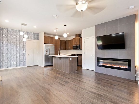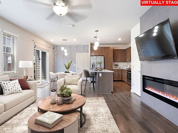 Rare end-unit in the coveted Rosedale Parks community, this 3-bedroom, 3-bath home offers convenience, comfort, and modern design. The main floor features a spacious great room with a sleek fireplace, luxury flooring, and a chef's kitchen complete with quartz counters, a large sit and serve island, and a high-end GE gas cooktop. Oversized windows and southwest exposure fill the space with light, and the dining area opens to a private fenced side yard perfect for entertaining, relaxing, or enjoying time with your pets. Upstairs you'll find a generous primary suite with ensuite bath and walk-in closet, two additional bedrooms, and a flexible family room/loft space. Tech-friendly upgrades include built-in network wiring for faster wifi throughout the house (great for remote workers), a Schlage smart lock, Honeywell thermostat, Ring doorbell/camera, Westinghouse smart TV, and Samsung HE washer/dryer. An overized two-car garage provides ample storage and workshop space in addition to parking.