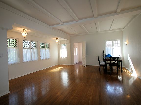 Gorgeous Spanish Revival upper level floor of duplex. The home offers gorgeous high ceilings, hardwood flooring, a brand-new kitchen with all stainless steel appliances, quartz counter tops, and a brand-new built-in refrigerator, new lighting, and fresh paint throughout. The massive living room and family room open to each other as you enter. The living room offers a wood-burning fireplace. There also is a home office/den off the family room. All three bedrooms provide abundant closet space. The master bedroom offers views of the Hollywood Hills and provides a large walk-in closet. There is a large formal dining room, as well as a breakfast room off the kitchen with built-in cabinetry. Convenient location to Beverly Hills, The Grove/Farmer's Market, etc..., make it's location ideal. One outdoor parking space on the property in the circular driveway is provided. Additional street parking is available with permit paid by tenant. Must have minimum credit score of 700. Additional pet deposit required.