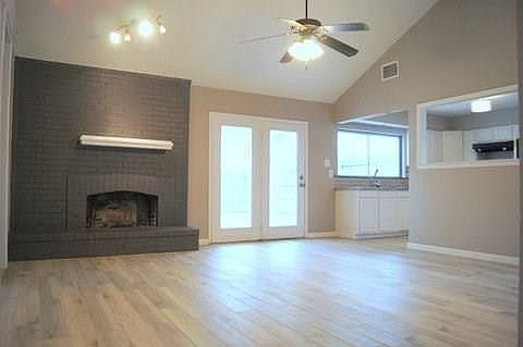 GORGEOUS 4-2 home in North Mesquite is move-in ready! Located in desirable Meadow Glen subdivision. This house has been totally renovated. New paint, floors, fixtures, and foundation repair in 2017. Nice sized living area with vaulted ceilings and a wood burning fireplace with an open concept. Kitchen has granite countertops, designer backsplash, and stainless steel appliances. All bedrooms have new carpet and bathrooms have been totally updated. All living and dining areas have stylish wood design tile. Large 4th bedroom can be easily used as a game room or media room. Good sized back yard with an open patio and rear entry spacious 2 car garage. Buyer and buyer agent to verify all information and measurements.