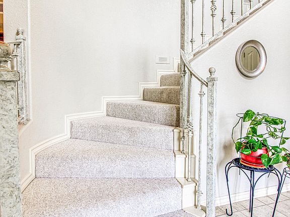 Welcome to your serene retreat on a charming half-moon street. This beautifully maintained home, built in 2001, showcases a perfect blend of updates and timeless comfort. With five spacious bedrooms, including two convenient guest rooms downstairs, this residence offers ample space for family and friends. Step inside to find a cozy living room featuring a gas fireplace and a family room with surround sound speakers, ideal for entertaining or relaxing evenings. The heart of the home is enhanced by newer Infinity A/C units and updated windows that create a comfortable living environment year-round. The primary suite, located upstairs, boasts a spa-like en suite and generous walk-in closet. Storage is plentiful throughout, ensuring every item has its place. Outside, the backyard is complete with a beautiful fountain sourced from Monterrey, MX, and a heated pool and spa, perfect for year-round enjoyment. The extended patio decking, equipped with built-in speakers, makes it an ideal spot for gatherings.