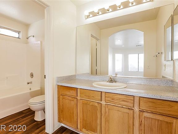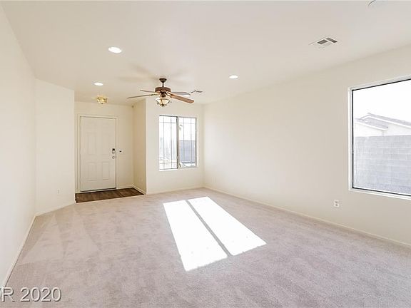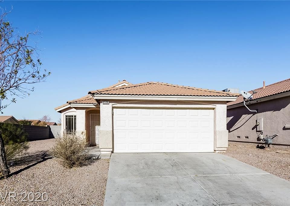 This Las Vegas one-story cul-de-sac home offers a two-car garage.