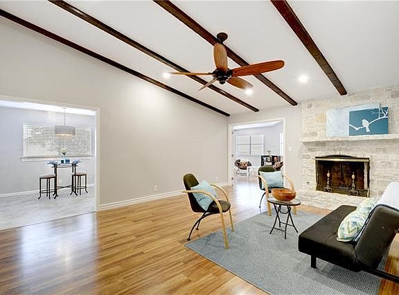 Beautifully remodeled four bedroom two bath home with three living areas on corner lot and cul-de-sac. Formal dining and breakfast area. Newly remodeled kitchen has granite counters, under mounted sink, new stainless steel appliances and new lighting. Both bathrooms tastefully redone with stone tile flooring. All new porcelain tile, pergo and carpet flooring. Ceiling fans throughout. Small space just outside kitchen can be used for office or storage. Fresh paint throughout. Come and See!!!