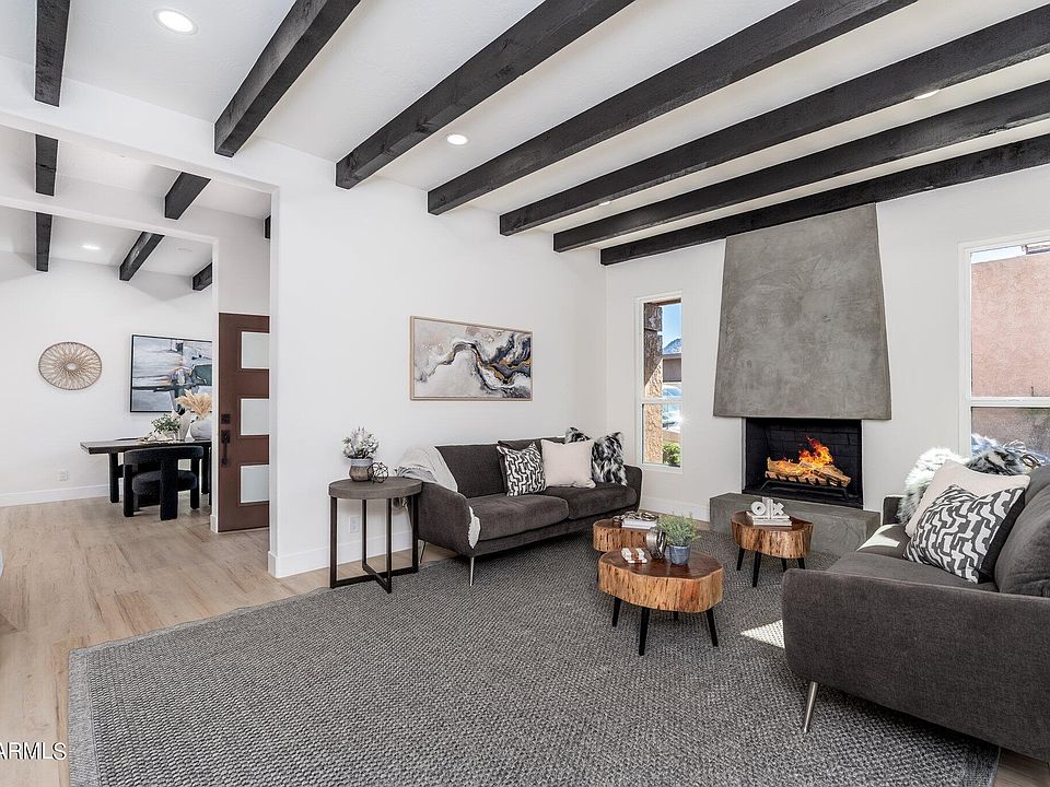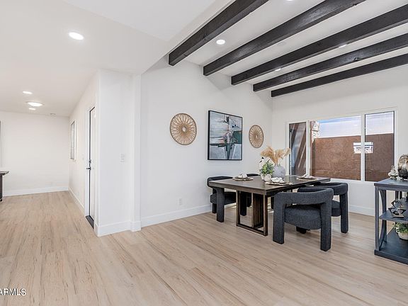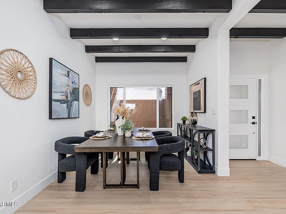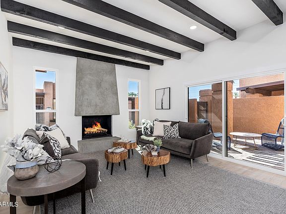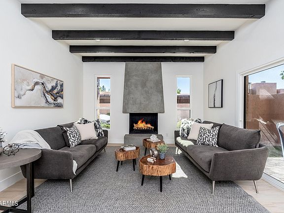 Meticulous 3-bed, 2-bath condo nestled in the heart of North Central Phoenix. An extensive remodel was just completed. This 1,870sf home exudes modern elegance with new windows & doors, premium wood-look flooring and paint. Kitchen featuring quartz countertops, SS appliances, wine fridge, gas stove and custom cabinets. Enjoy the spacious living areas with tall ceilings, rustic beams and fireplace creating an inviting ambiance. Retreat to the primary suite with en-suite bath, walk-in closet and direct access to one of 2 private patios. New roof and new HVAC system both less than 2-3 years old along with a new water heater. Oversize 2-car garage with storage cabinets. This property offers comfort, practicality and peace of mind. Don't miss this stylishly updated masterpiece - welcome home!