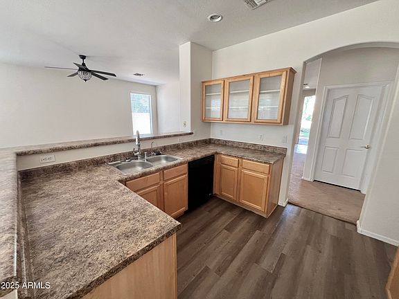 Beautiful home located in Seville! Great-room, eat-in kitchen, kitchen cabinets are accented with glass fronts, corian counters, split bedroom floor plan with large main bedroom, desert and grass landscaping and 2 car garage. Gas and electric.