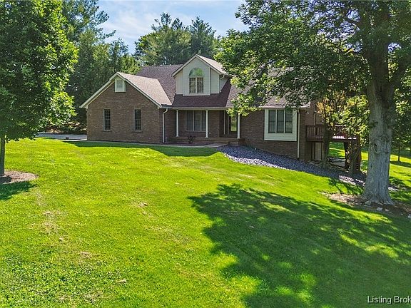 Welcome to this spacious all-brick home offering over 3,700 finished square feet on a private 1.9-acre lot! With 4 bedrooms and 4.5 bathrooms, this property combines comfort and functionality with geothermal heating, 3 fireplaces, and a central vac system. The heart of the home features a large kitchen with granite counters and casual dining space, as well as a formal dining room perfect for entertaining. The main-level primary suite includes private deck access—ideal for morning coffee in a peaceful, secluded backyard setting. Enjoy gatherings on the expansive rear deck, surrounded by mature trees and nature. This home also offers vaulted ceilings, a cozy living room with a stone fireplace, and a walk-out lower level providing extra flexibility for living or storage. Solid construction, thoughtful layout, and serene outdoor living spaces make this a true standout. Buyer is providing a one year home warranty as well.