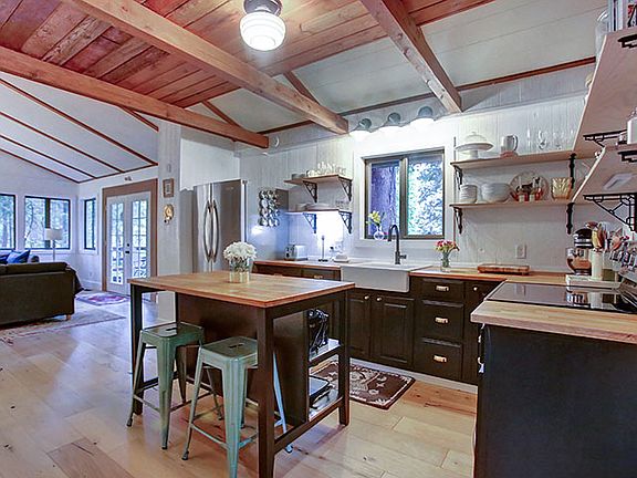 Beautifully updated 1 level ranch with 2 bedrooms and 1 bath and a great open layout. Kitchen has been updated with island, apron sink and stainless appliances. New floors through out and new wood stove make the home warm all winter. Additional sleeping loft not in square footage. New large shed out back for extra storage. Timberline Rim has a pool, clubhouse and tennis court. Use as summer vacation home or full time residence.