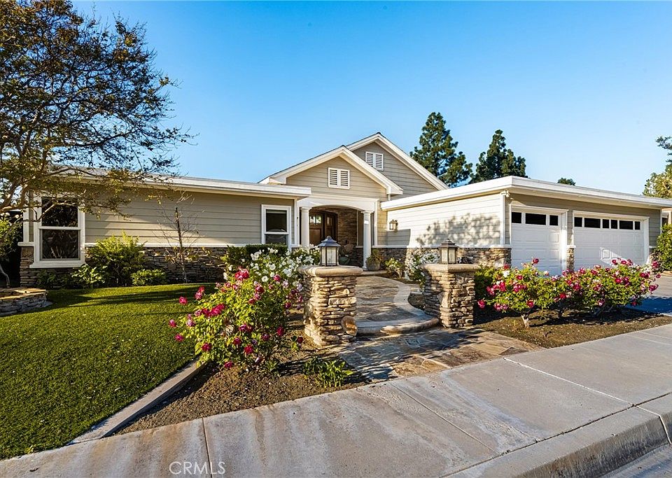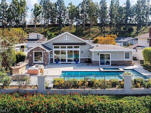 This remodeled single-story home is perched on a premium lot within the sought-after Broadmoor neighborhood. Panoramic views of North Orange County and the San Gabriel Mountains are seen throughout the open concept floor plan. This unique residence boasts superior craftsmanship and an entertainer’s dream layout, encompassing approximately 2,200 square feet with 4 bedrooms and 2.5 baths. Having undergone major renovations in 2012, every aspect of this home has been thoughtfully considered; it is truly custom in its design, floorplan,and upgrades. The flat ceilings were raised to open beams with 8' double patio doors and upper windows. Attention to detail is evident throughout the home from the inviting curb appeal to the backyard, including a redesigned pool and spa with a Baja shelf in 2017, a built-in BBQ area, entertaining patios, artificial turf, raised bed vegetable garden, fire pit, fountain, automatic awnings and outdoor speakers. Upon entering, you’ll be captivated by the dramatic living room featuring soaring ceilings, a gas fireplace, and expansive glass walls that frame breathtaking views of the serene surroundings. The formal dining room seamlessly connects to both the living room and gourmet kitchen, creating an effortless flow for entertaining. The impressive gourmet kitchen is a chef’s delight, boasting custom cabinets, extensive Quartzite counters with a sizable center eating island, and top-of-the-line stainless steel appliances, including a 48" Viking gas stove with grill, 42" Kitchenaide built-in refrigerator, and warming drawer. The Primary Suite, with double patio sliding doors provides direct access to the backyard and exudes luxury and comfort. Quality upgrades abound throughout the home, such as engineered wood flooring, a new indoor laundry room, skylights, a generous finished attic with laminate floors, customized closets, a tankless water heater, surround sound, and ample storage space. Meticulously maintained, the property includes a 3-car attached garage with storage cabinets and falls within the highly regarded Canyon Rim Elementary, McPherson Magnet and Canyon High school boundaries. Don’t miss this rare opportunity for the discerning buyer to claim ownership of this one-of-a-kind property. Welcome home!