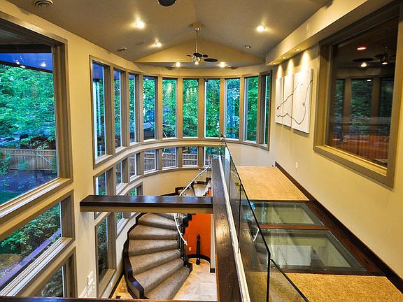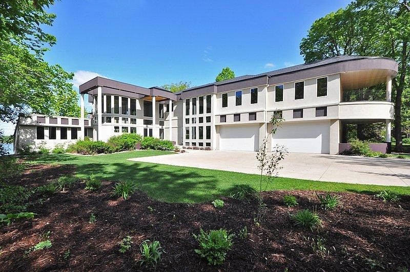 Strikingly contemporary styled home on private, lake lot. Custom finishes throughout this luxurious residence. Twelve ft ceilings on main with vaults to 13 ft on upper. Open & spacious floor plan with numerous windows to capture spectacular lake views.