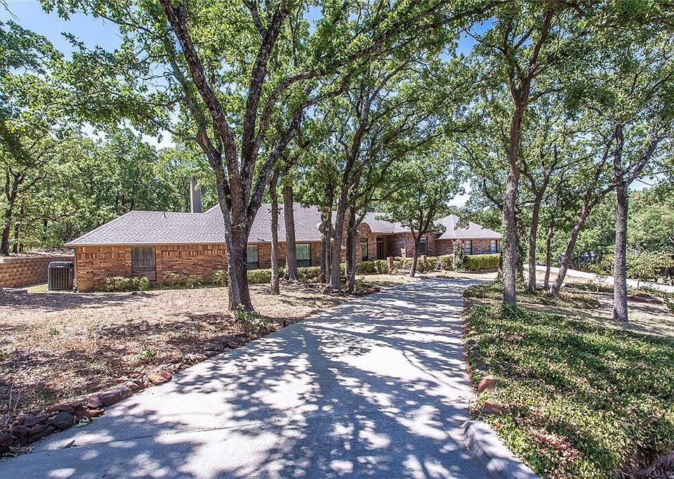 Peaceful country setting on .98 acres in desirable west Flower Mound! Great floor plan, fresh paint & carpet, hardwood floors, granite with gorgeous tile back splash in kitchen, fireplaces in master and living room. Two living and dining areas, wet bar, in-law suite with private access. Beautifully treed lot with inviting horseshoe drive, stone retaining wall, landscape lighting in front, two storage buildings out back, and more! Dual HVAC, two hot water heaters, and new aerobic tank. Close to Lake Grapevine in award-winning Lewisville ISD. Just minutes from shopping... this home has it all!