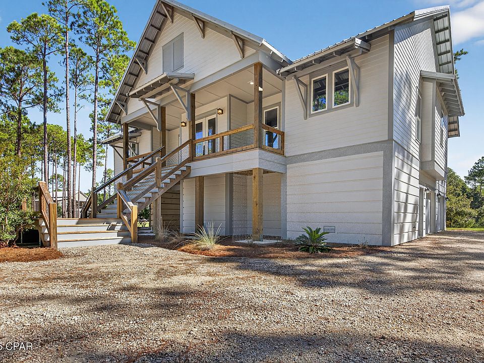 An incredible home on a pond by Koehnemann Construction, one of Bay County's most award-winning builders. This never lived-in home is located on an acre with 2,462 SF, 4 bedrooms and 2 full baths and has an elevator shaft ready for an elevator. Ten-foot ceilings with cathedral great room and an open kitchen overlooking the expansive living room. Large, screened porch overlooks the pond. Enclosed 2-car plus garage with tons of storage plus covered parking ideal for a golf cart, trailer and/or boat. Rivercamps is a luxury gated 1,500-acre community which boasts large lots unlike any other gated community in Panama City Beach. Less than 450 homesites on 500 acres and 1000 acres dedicated to conservation. There are 7 miles of trails and connected boardwalks ideal for hiking, biking and golf cart rides. RiverCamps is surrounded by 3 bodies of water, West Bay, IntraCoastal Waterway and Crooked Creek. Owners enjoy a community boat ramp with direct access to West Bay and the Gulf which is a 30-minute boat ride away. Dry boat storage, docks and day-use boat slips. A brand new zero-entry pool and pavilion.