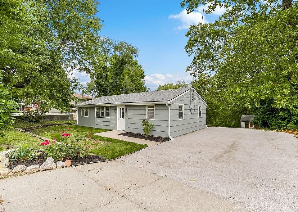 Welcome to this beautifully remodeled 3-bedroom, 1-bathroom ranch-style home in the charming Pleasant Valley, MO. Every detail has been carefully considered in this total remodel, boasting fresh paint, plush new carpets, a state-of-the-art HVAC system, a brand-new water heater, and a sturdy, recently replaced roof. Convenience meets functionality with the laundry area located just off the kitchen, ensuring seamless household routines. The backyard is a true oasis, featuring a 12 x 13 shed for storage, a welcoming firepit for cozy gatherings, and a beautiful stone walkway. Entertain guests or unwind in style on the expansive covered patio, providing ample space for outdoor living and dining. Situated on a generous lot, this home backs to serene greenspace, offering a tranquil backdrop of mature trees and natural beauty. Don't miss the opportunity to make this thoughtfully updated ranch-style residence your own!