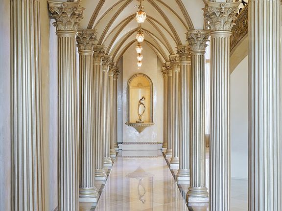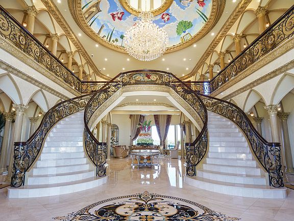 Resort-style backyardSits atop a hillBreathtaking sunset viewsSoaring hand-painted ceiling domesElevator serves all floorsOutdoor fireplaceExpansive game room