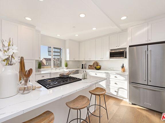 Updated, open concept 4-bedroom, 4-bath townhouse featuring panoramic rooftop ocean views. This hilltop, West facing home allows for abundant natural light while maintaining privacy. Enjoy beautiful views from the completely remodeled and redesigned kitchen and entire third floor (substantial and transformative upgrades to entire home completed in 2019). Oversized rooftop deck is perfect for entertaining with infinite views from Malibu to PV. An ideal layout with three bedrooms on the second floor and a fourth on the first floor. The spacious master has an oversized walk-in closet, en-suite bathroom, jacuzzi tub and two balconies with French doors. First floor features a bedroom with en-suite bathroom, perfect for guests or a quiet office. Two car attached garage and spacious entry way with plenty of space for all of your beach gear. Close proximity to the beach, Pier/downtown shops and restaurants, the Greenbelt, parks, and award winning school District, this home truly has it all!