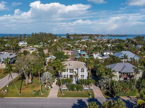 Experience island living at its finest in this exquisite coastal retreat in the historic Village on Longboat Key. This home offers a refined blend of relaxed coastal charm and timeless sophistication throughout more than 3,300 heated square feet. The meticulously designed interior includes elegant crown molding, coffered ceilings, custom doors, impact windows and an elevator from the garage to each level. The great room features dramatic ceiling height and opens to a large covered terrace overlooking an exceptionally private backyard, creating an ideal setting for quiet evenings and effortless entertaining. The gourmet kitchen is a chef’s dream with rich wood cabinetry, granite countertops, natural gas cooktop, a pot filler, center island with sink and second cooktop, and a bright breakfast nook that opens to a covered terrace, ideal for morning coffee. Adjacent dining and living areas flow seamlessly and are enhanced by a coffered ceiling and French doors to the charming terrace. The second-level primary suite serves as a serene retreat with polished wood floors, an intricate coffered ceiling, a comfortable seating area, and a private covered balcony for enjoying peaceful moments under the morning or evening sky. Elevated views and sound of ospreys add to the sense of tranquility. The suite also features a spacious en-suite bath with soaking tub and two walk-in closets. Three additional bedrooms provide comfort and flexibility for guests or work needs. Outdoors, a resort-style saltwater pool and spa with integrated features are surrounded by lush landscaping and generous lounging space. The expansive ground-floor lanai and outdoor kitchen further enrich the indoor-outdoor living experience. A circular brick drive accommodates more than 10 vehicles, and the oversized two-and-a-half-car garage and first-level area offer abundant storage, ideal for bicycles, golf carts, kayaks and more. The home and pool are centered on a 12,000-square-foot lot, and an adjacent 6,000-square-foot parcel is also available from the same owner for those interested in expanding or creating a larger compound. This unique golf cart friendly community is surrounded by waterfront restaurants, quaint shops, cafés, fitness centers, fishing piers, a boat ramp on Sarasota Bay, kayak launch areas and a pristine Gulf beach just moments away with no mandatory HOA. We invite you to experience this remarkable home in person to fully appreciate its beauty and lifestyle.