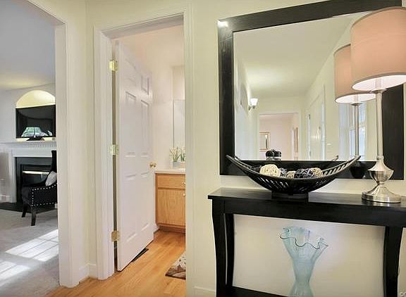 Charming 2 Story, Maintenance Free, Front Porch, Rear Deck, Large Family Room with cozy fireplace, French doors leading to rear deck, Huge eat in kitchen with loads of cabinet space. Breakfast eating area to allow family and friends to hang out while meals are being prepared. There is also a Formal Dining Room with hardwood floors, and a 1st floor Laundry Room. Upstairs, there is a wonderful Master Bedroom Suite with Walk In closet, soaking tub, his/her vanity. There are 3 other spacious bedrooms and additional private bath; all with neutral décor.