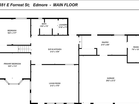 4 Bedroom home situated on an amazingly spacious corner lot in Edmore. This home boasts a large main floor master bedroom and 2nd bedroom, full bath with main floor laundry, spacious living room with cathedrial ceiling, and open dining area and kitchen that leads to large pantry/entry to attached garage. Upstairs includes two bedrooms and full bathroom. Along with a collection of fruit trees and being conveniently adjacent to the Meijer/ Heartland Bicycle Trail, the home includes a front entry deck, back entertainment deck, and expansive 32 x 50 insulated and heated dream barn with 14ft eaves (including 220volt electric service and water plumbed to barn). This home has all that you'll need in a country estate all located on almost an acre parcel in town.