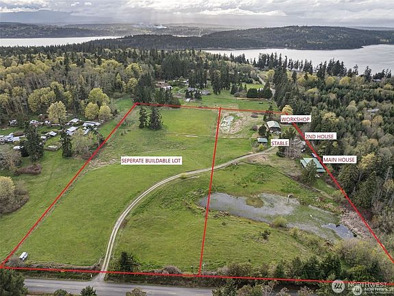This Marrowstone Island Estate is one you can't miss. This property offers 2 parcels of about 7 acres each. Use it all as single property or split it up! One parcel offers a Custom built 3240 sq ft home, a 2400 sq ft shop (could be a wedding venue). a 2.5 stable barn w/ hay loft & chicken coup & a 2 bd/ 2 bath manufactured home. The other parcel is a blank canvas, currently pasture land. The pond on the property is home to lots of wildlife and the peacefulness of the island makes this a nature lovers dream. The possibilities are endless, come take a look!!