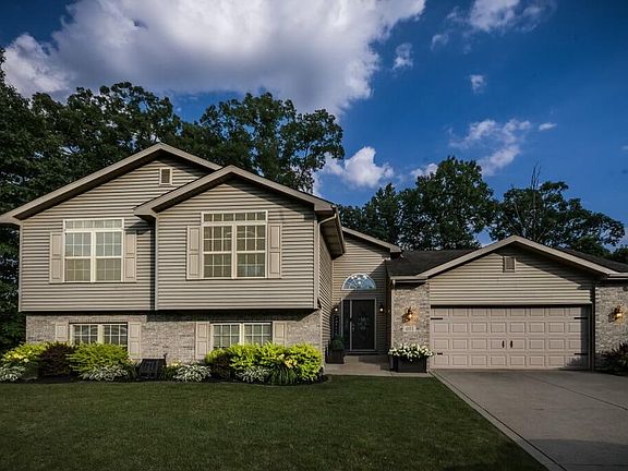 ~Welcome Home~ Beautifully updated 5 bedrooms 3 bathroom bi-level home sits on a quiet culdesac on a gorgeous serene partially wooded lot that backs up to Duck Creek. Step inside you will fall in love with the spacious foyer which offers 16ft ceilings, new vinyl plank flooring, new carpet and fresh paint throughout. As you go up the stairs you will love the open concept layout within the kitchen and living room with vaulted ceilings. The eat in kitchen includes a large island, pantry, newer SS Whirlpool appliances, sliding doors off the kitchen that lead you to the freshly painted deck with breathtaking views overlooking Duck Creek. The backyard retreat offers an abundance of privacy as you are surrounded by a wooded lot, panoramic views of nature, a fire pit to enjoy, and a storage shed. This setting is every nature lovers dream. All bathrooms have been recently updated with Quartz countertops in 2 of them. There are 3 generous sized bedrooms on the upper level with one being your primary en suite with a large walkin closet. As you head to the lower level you will find 2 more very generous sized bedrooms with tons of closet space, storage, a bathroom with a walk in shower, and a laundry room. This meticulously maintained home boasts the pride of ownership and is move in ready! This is a must see.. don't miss out on the chance to call this one your very own Home Sweet Home!