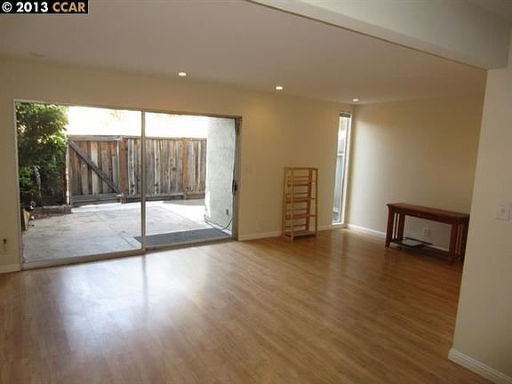 Hardwood floors, new paint, new carpet, new recessed lighting, new refrigerator, skylights and updated bath. Balcony and enclosed patio overlooks open space. No rear neighbors. One bedroom en suite on main level two bedrooms up. Close to fenced in pool area. HOA dues includes water, heat, trash etc.